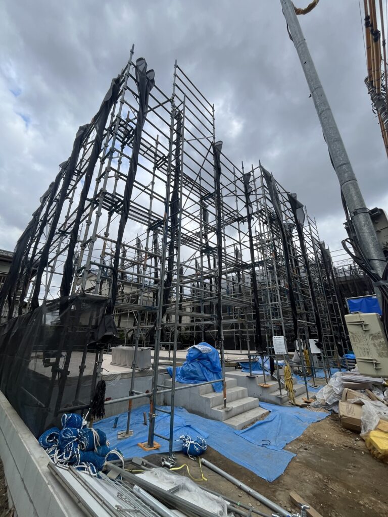本日は市川市にて2階建て3棟の新築足場組み立てと同じ現場で1棟新築足場の解体を行いました!